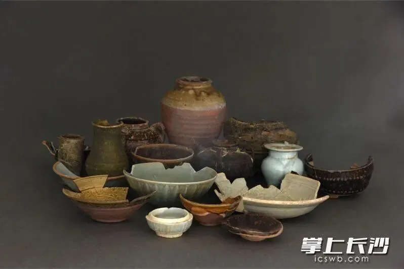 此次发掘出土器物970余件(套),陶瓷片400余袋,包括青瓷盘口壶、砚台、瓦当、粉盒、铺地砖、铜镜等,为研究长沙古代生活面貌及陶瓷史提供了海量标本。