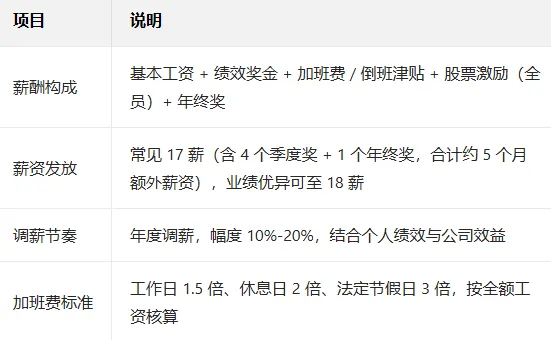 以上为通用水平,具体薪资因个人能力、司龄、绩效有差异,股票激励额度随岗位层级递增。