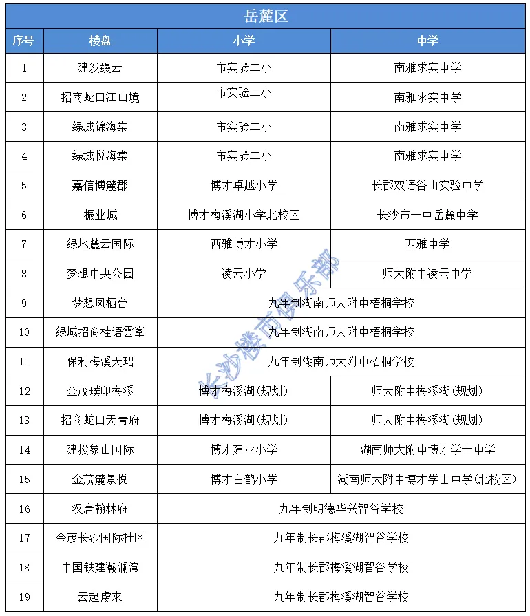 作为长沙的教育强区,岳麓区在双学区楼盘数量上依然领跑。