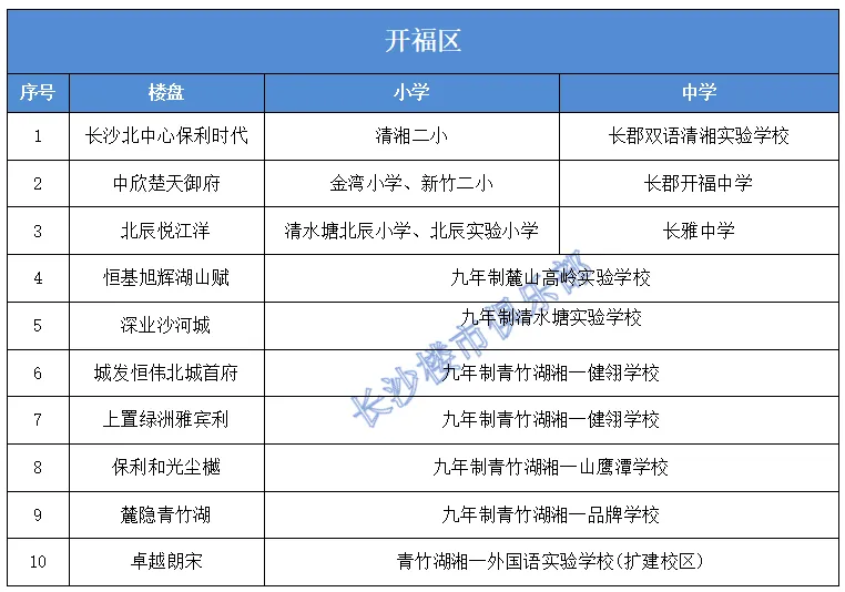 其他的开福区很多的“双书包”配套盘,主要以青竹湖湘一品牌旗下学校为主,楼盘选择性较多,高层、洋房、别墅都有。