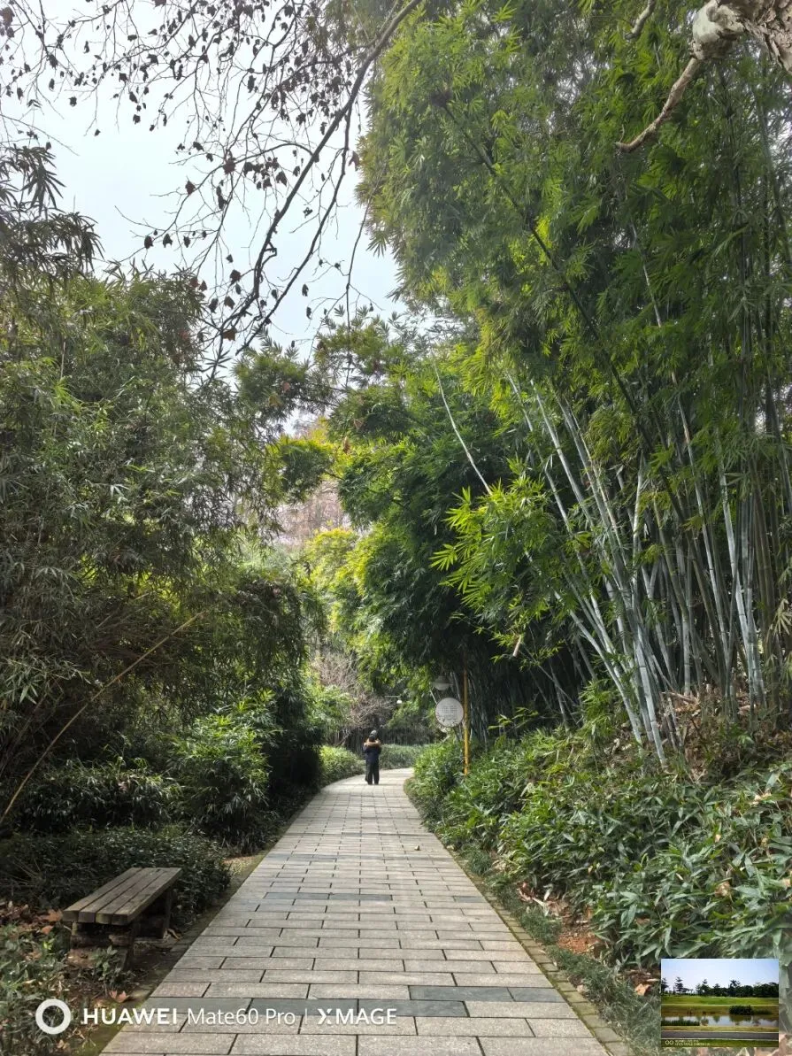 园内有宽阔平坦的大马路,也有台阶和小土路。植被茂密,四季有景。紧挨着竹园的是梅园,花儿盛开,吐露芬芳。