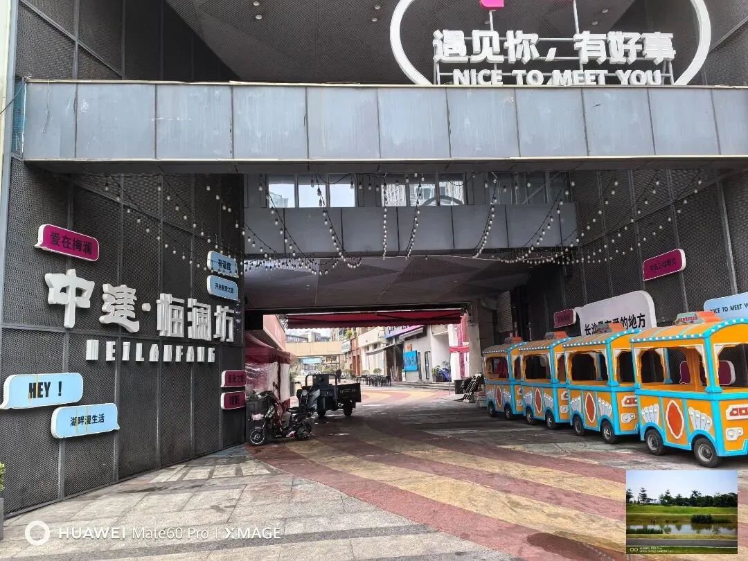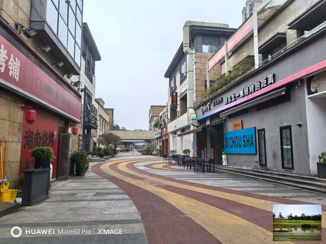 一到湖边,就下起迷雾蒙蒙的小雨来,有点小冷。我们先来到梅澜坊商业街,全长约一公里,是典型的夜宴、夜娱、夜演、夜购文旅消费聚集区。我们到得太早,商业都未开门。