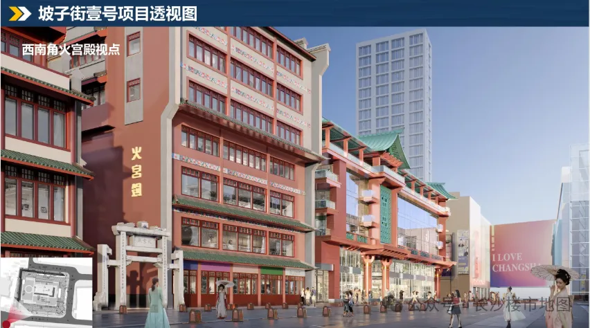 项目位于天心区坡子街和火后街围合处,西侧是火宫殿,东侧是悦方ID Mall。