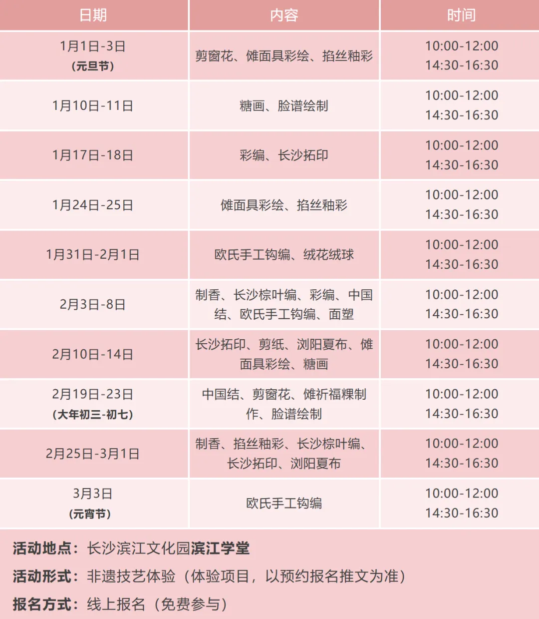 形式:非遗技艺体验(体验项目,以预约报名推文为准)
