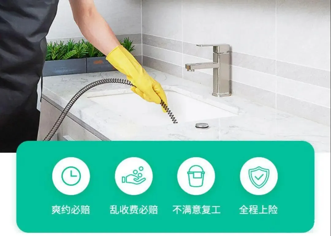 下水道疏通:快速疏通因装修掉入水泥、沙子或头发等造成的下水道堵塞。