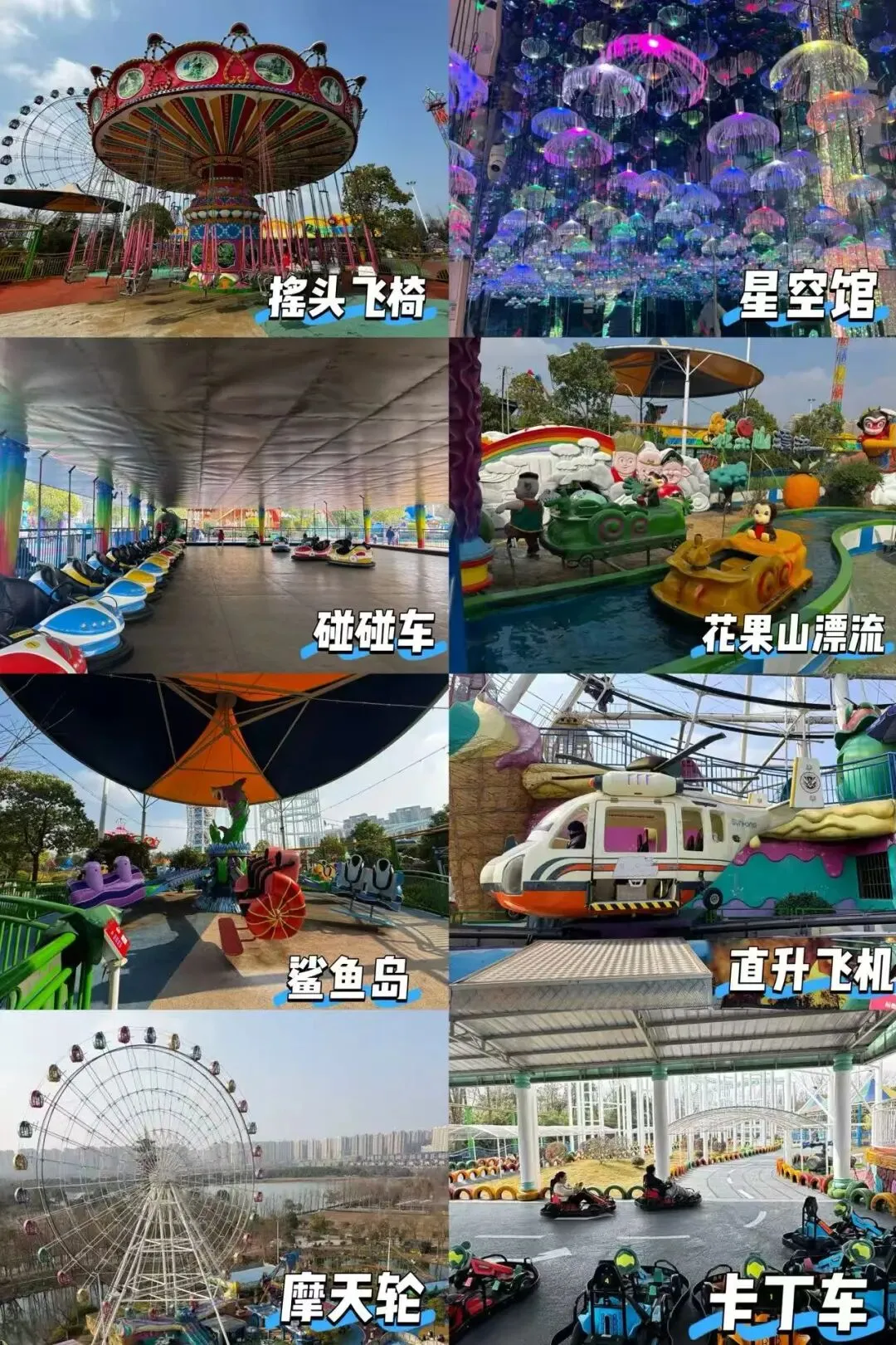 🎟️玻璃漂流、卡丁车、9D影院、摩天轮🎡、过山车🎢、直升飞机、飞椅…几十个项目;边踏春、露营⛺️边玩各种游乐设施✌️