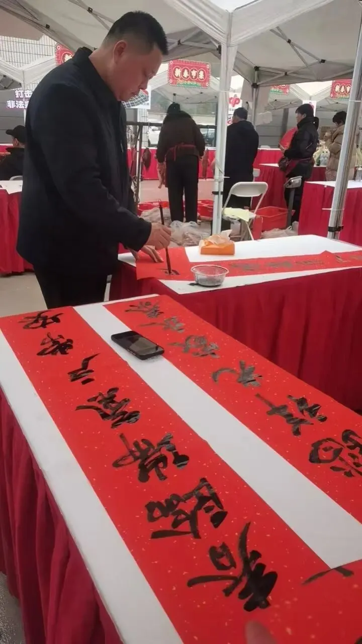 中华诗词学会会员,中国楹联协会会员,湖南省诗词协会副秘书长,长沙市群众文艺工作者协会副主席,长沙县诗词楹联协会主席张文,现场热情张罗引导。邀请过往群众免费领取春联,按照现场市民的需要挑选内容、定制专属联语。低温难挡群众热情,不少市民驻足围观、有序参与,一幅幅墨香未干的春联整齐摆放,镜头频频定格书法家们挥毫泼墨的潇洒身姿,用文字与影像记录下这场暖心又接地气的文化惠民活动。