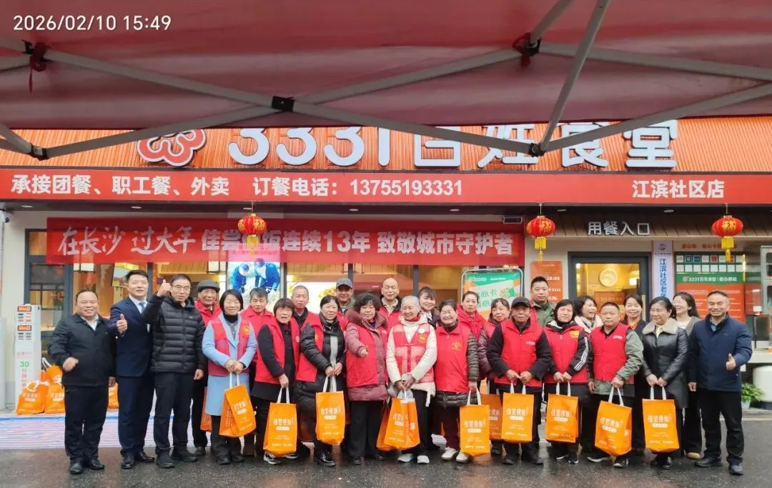 2月10日,长沙开福区3331百姓食堂内灯笼高悬、暖意融融,欢声笑语驱散了冬日寒意。由长沙市安化商会副会长、佳尝便饭及3331百姓食堂创始人王心亮牵头倡议,联合湖南省红十字会、开福区政协、开福区委宣传部、开福区总工会、开福区社会禁毒协会、长沙市安化商会、江滨社区等7家单位主办,佳尝便饭、3331百姓食堂、零食很忙、瑞果创意、易泡科技、迪姆锦源、十八洞村、月饼哥哥、錱轩科技等10余家爱心企业及世界小姐吴利等爱心人士共同承办的“在长沙过大年——致敬城市守护者 礼遇好人模范 情暖一线劳动者”新春慰问活动,在此温情启幕,为长沙新春图景添上了最动人的温暖一笔。
