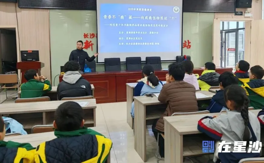 2月4日上午,泉塘街道平安法治办、禁毒分会联合星港社区,为130余名参加社会实践的学生、家长开展防范青少年涉麻精药品等成瘾性物质滥用专题讲座。活动邀请长沙县禁毒协会泉塘街道分会会长柳超老师进行授课。