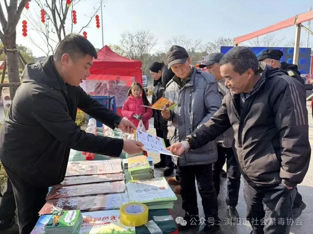 2月4日,浏阳市禁毒机制办联合淮川街道平安法治办、淮川街道禁毒分会在浏阳翠园公园开展了一场“禁毒知识盛宴”。淮川街道禁毒分会会长黄敦兵带领禁毒志愿者,通过“仿真模型展示+现场互动讲解+趣味资料派发”的多元形式,让禁毒宣传深度融入浓浓的新春烟火气中,实现了“办年货、学禁毒、守平安”的双赢。