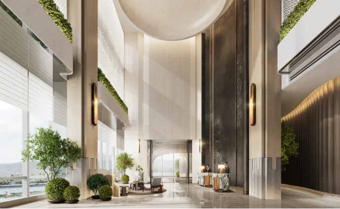 围绕“简美奕境,风华正茂”的品牌理念,诺雅以“中式审美的世界表达”为设计主线,将水墨意境、自然肌理等东方元素,与现代简约的设计语言相融合。不过度彰显传统,却让东方美学在空间中自然流淌。无论是公共区域中延续东方神韵的艺术陈设,还是客房里精选的材质与细节处理,皆在简约中蕴含温度,于克制中体现雅致。