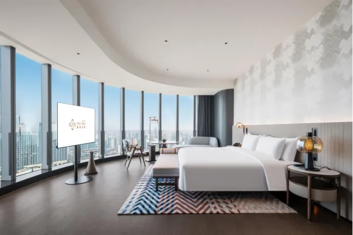 试运营期间,酒店客房、三大主题餐饮空间将率先开放。宾客可在此沉浸感受高空江景与东方美学的交融——“有味”餐厅呈现地道风味、“潮湘1925”演绎融合创意、“屿”大堂吧传递茶韵哲思,多元体验,静候品味。