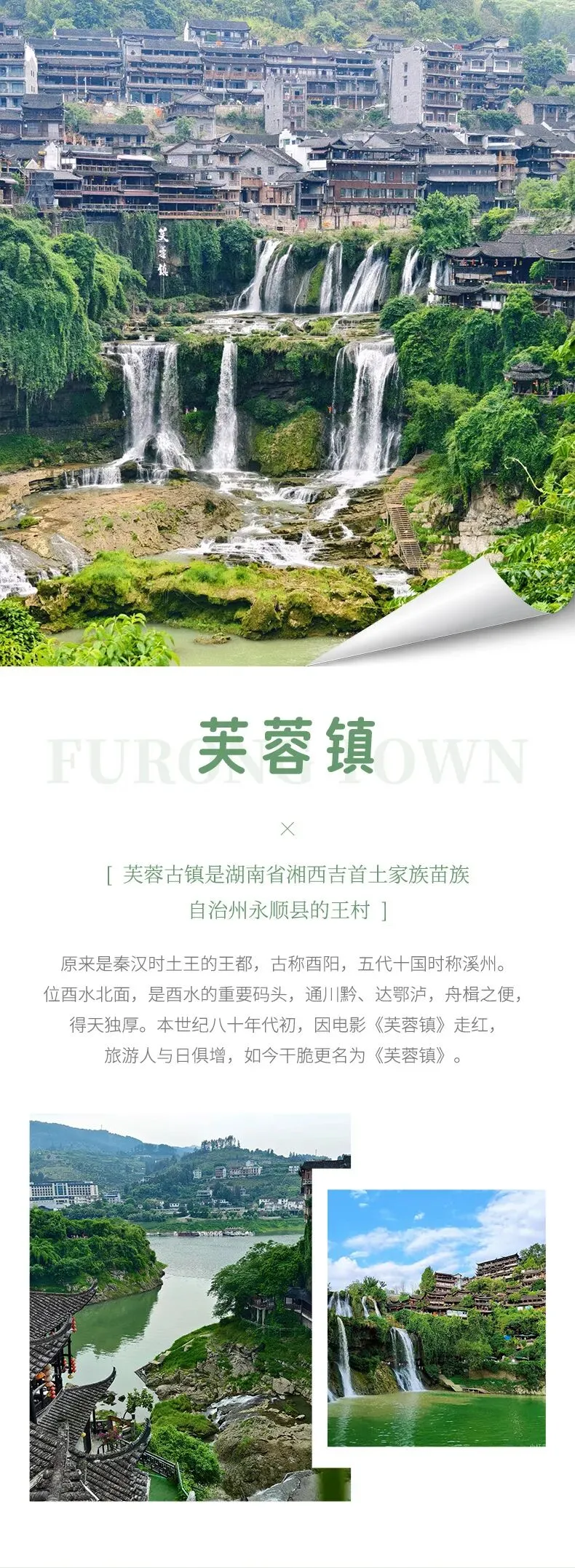 游览结束后,乘天子山索道下山,集合乘车前往挂在瀑布上的千年古镇 —— 芙蓉镇。