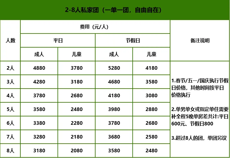 5.包团情况下,由于包团的特殊性质,集合日前15天内取消,需扣除100%订金或换人替代参加;