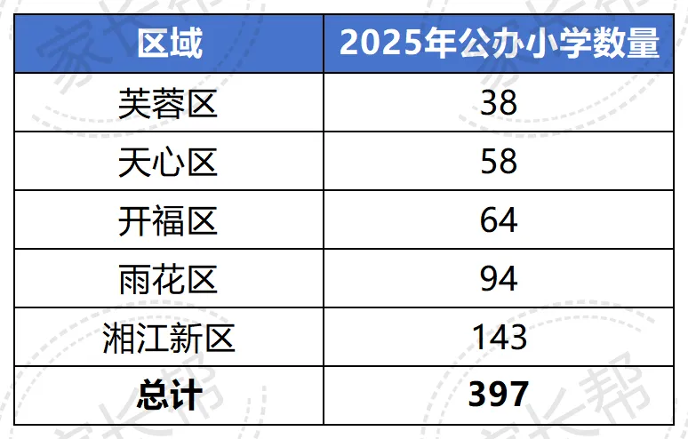 根据2025年学区划分统计,长沙城区目前共有397所公办小学,其中芙蓉区38所,天心区58所,开福区64所,雨花区94所,湘江新区143所。那各区都有哪些热门小学呢?