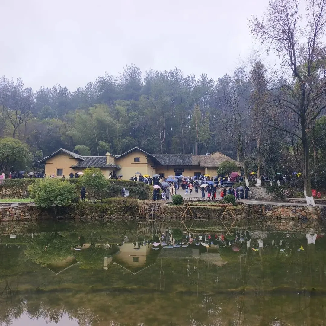 毛泽东故居坐落于韶山冲上屋场,土砖青瓦,背山面水,是一座典型的南方农家宅院。1893年,毛泽东同志诞生于此,并在此度过了童年与少年时光。细雨濛濛中,我们一边漫步,一边聆听导游讲述主席年少往事:“石三伢子”的乳名、两位干娘的故事,以及他成长路上遇见的良师益友。最让我动容的,是主席当年留下的借书欠条与一心向学的赤诚。那首《七绝·改诗赠父亲》,更让我看见一位胸怀大志、不甘平庸的青年形象。父亲本希望他守着家中二十多亩良田,打理家业,可少年毛泽东志在四方,毅然写下:孩儿立志出乡关,学不成名誓不还。埋骨何须桑梓地,人生无处不青山。 字字铿锵,尽显豪情壮志。求学路上,他更得多位师长贵人指点,新思想的光照亮了他前行的道路,也埋下了救国救民的初心。