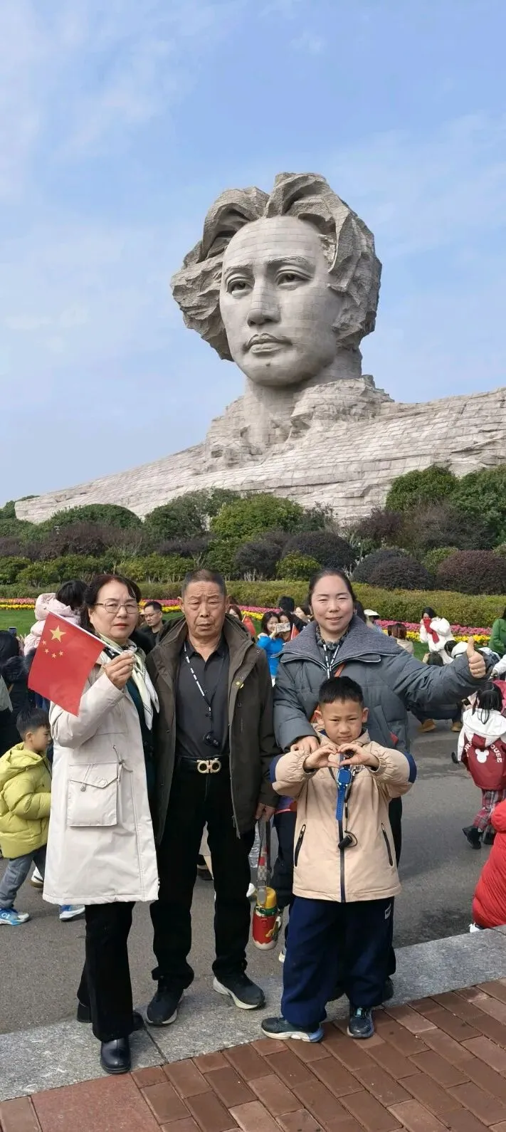 下午我们来到橘子洲。乐子特别期待看青年毛主席雕像,因为他名字里的“荣峥”二字,取自毛主席诗句“忆往昔峥嵘岁月稠”,他一直为此倍感骄傲。