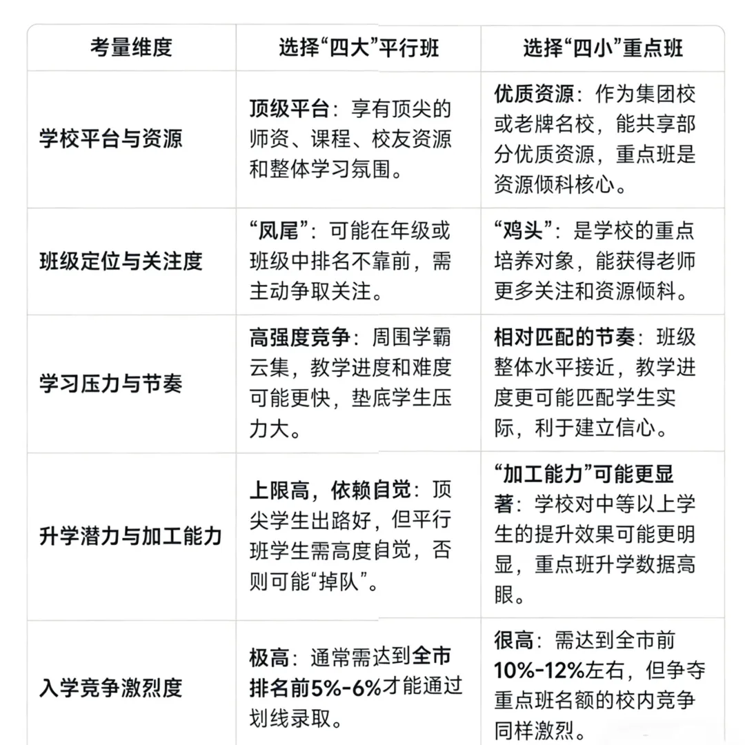“四大的平行班和四小的重点班怎么选?”这个问题没有标准答案。