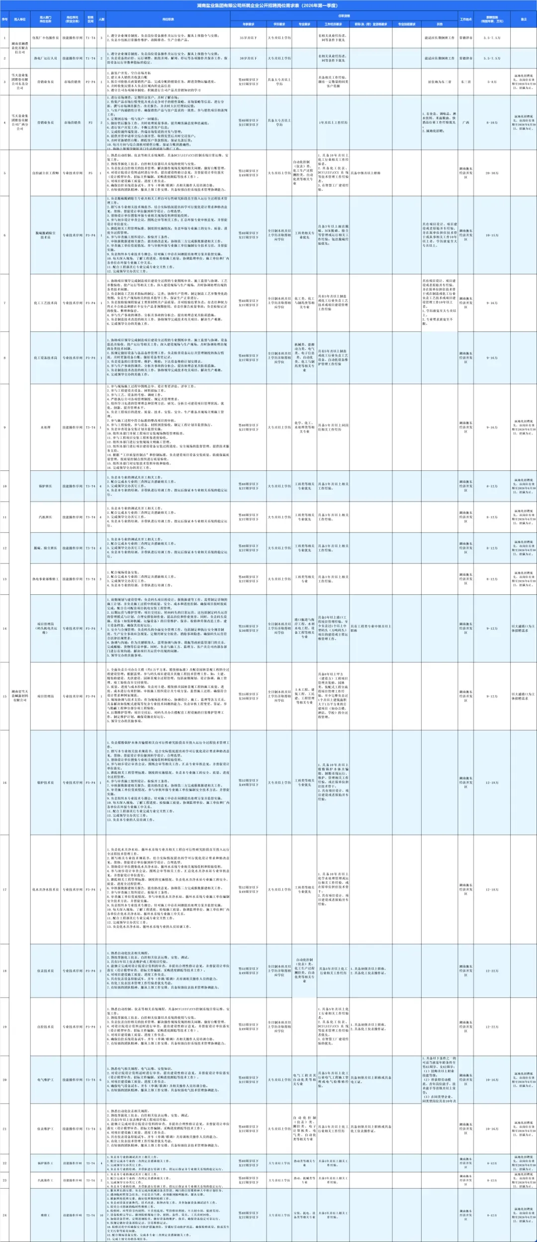 2.具有履行岗位职责所必要的专业知识,具有良好的职业素养,遵纪守法,勤勉尽责,团结合作,廉洁从业,无不良履职纪录,作风形象和职业信誉好。3.具有良好的心理素质和能够正常履职的身体素质。4.所学专业或工作经历原则上与招聘岗位相关,对专业资格有特殊要求的岗位还须具备相应的职称或专业技术资格。5.没有影响录用的其他情形(如有犯罪记录、吸毒、禁业限制、与其他单位建立劳动关系等)。6.存在任职回避情况的,应主动、如实汇报回避关系。如应聘者与湖南盐业集团有限公司所属企业员工存在亲属关系(如夫妻关系、直系血亲、三代以内旁系血亲或近姻亲关系等),应如实上报。如隐瞒不报,一经发现,将取消应聘资格。