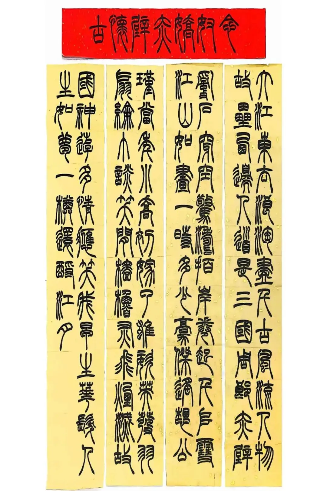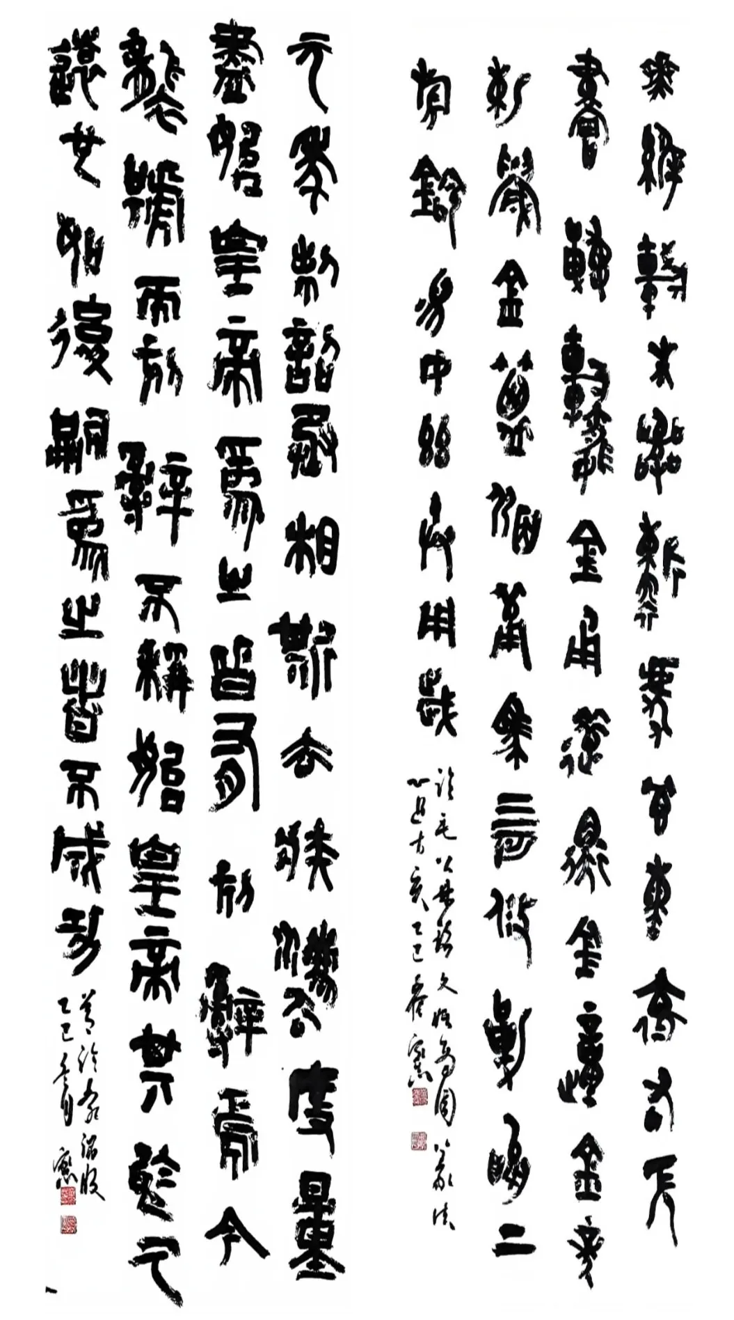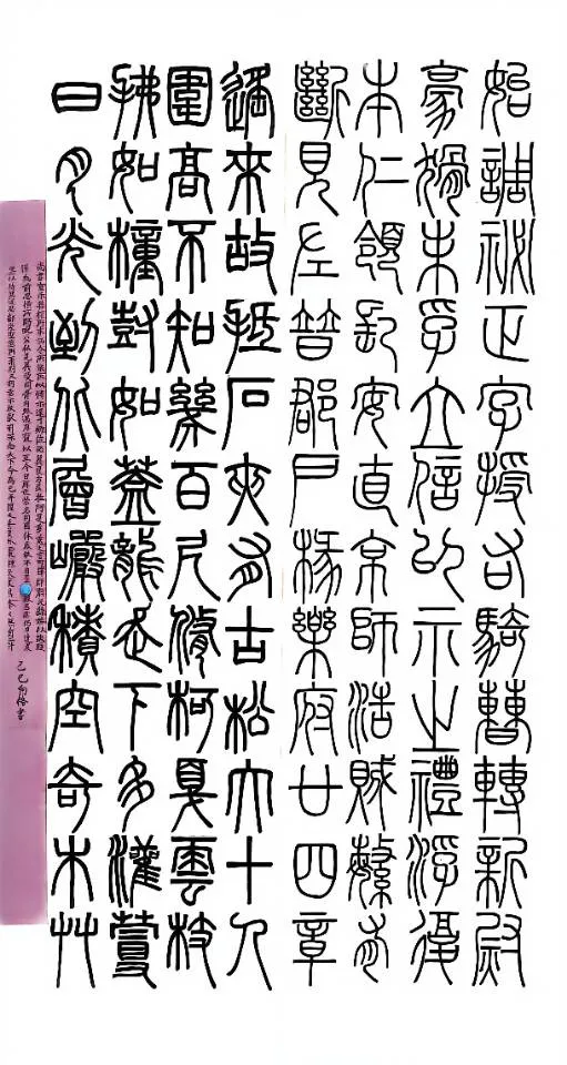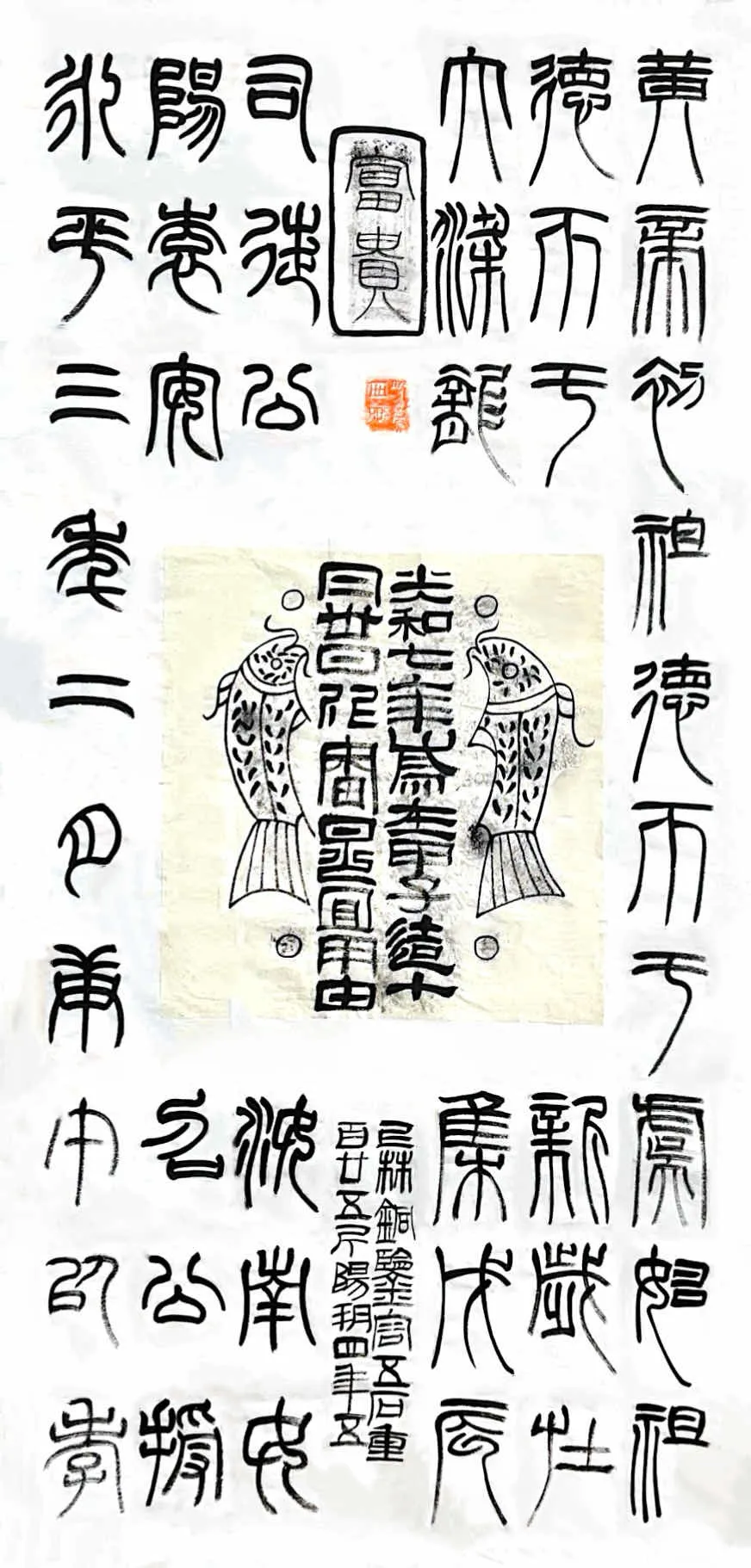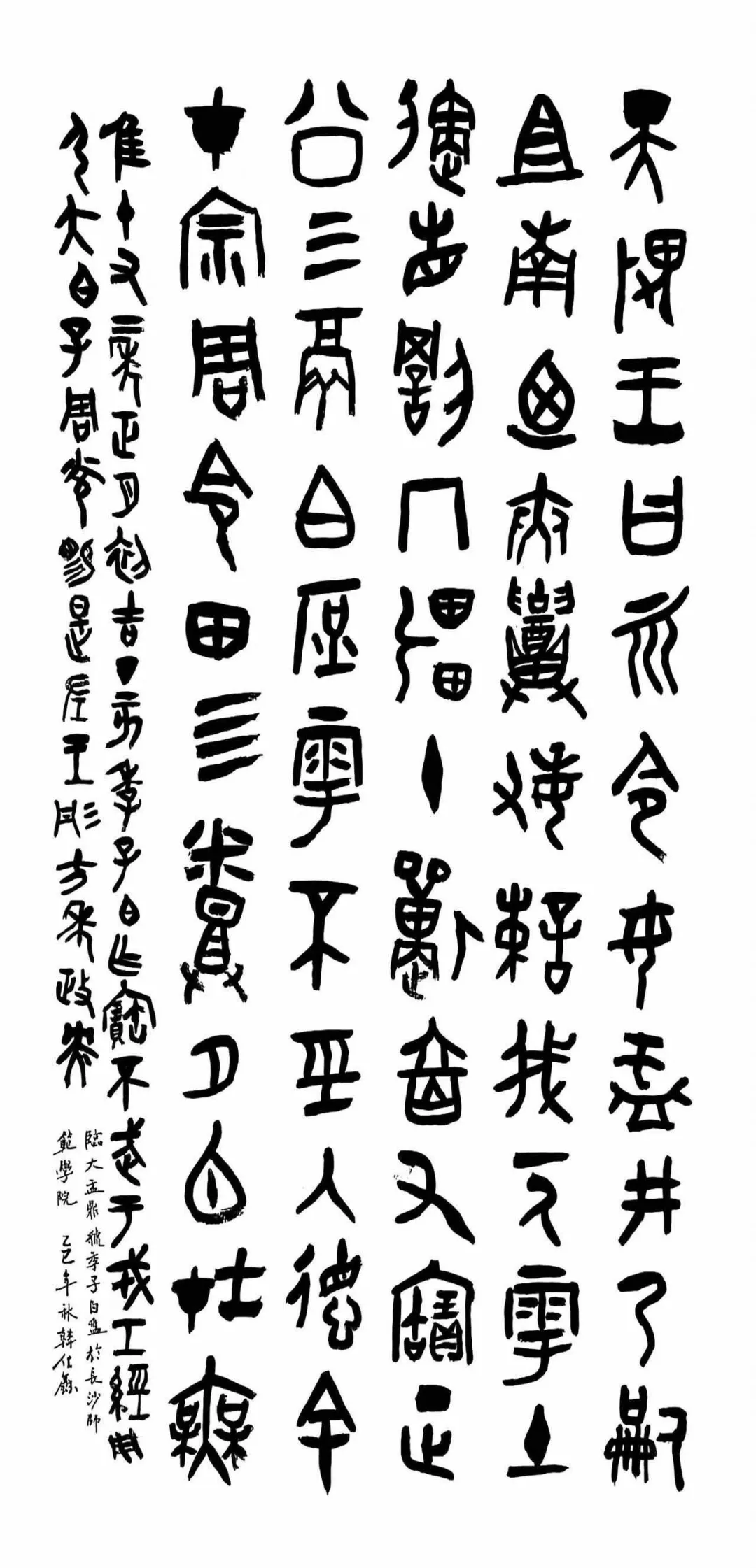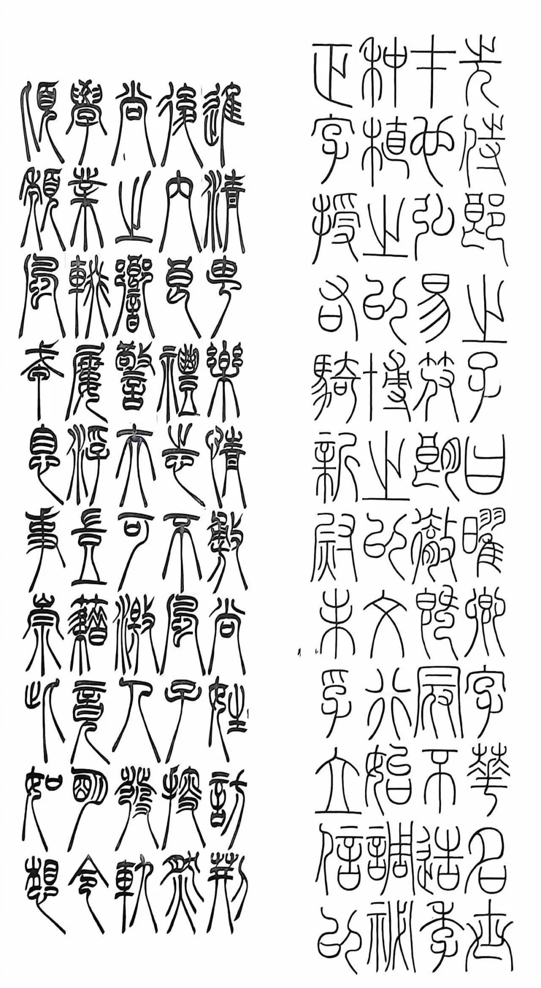 篆书乃中国书法之宗源,上承甲骨金文之古质,下启隶楷行草之流变。秦并六国,李斯等承《史籀篇》之遗绪,省改大篆,创制小篆,遂使文字一统。小篆以"婉而通"为尚,线条圆融如玉箸,结构整饬似天成;大篆则承商周金文之遗风,以"敦而圆"为宗,气象苍茫浑朴,笔意斑驳陆离。诚如包世臣所言"篆尚婉而通",一笔一画皆藏上古之韵致,一字一形尽见文明之根基。