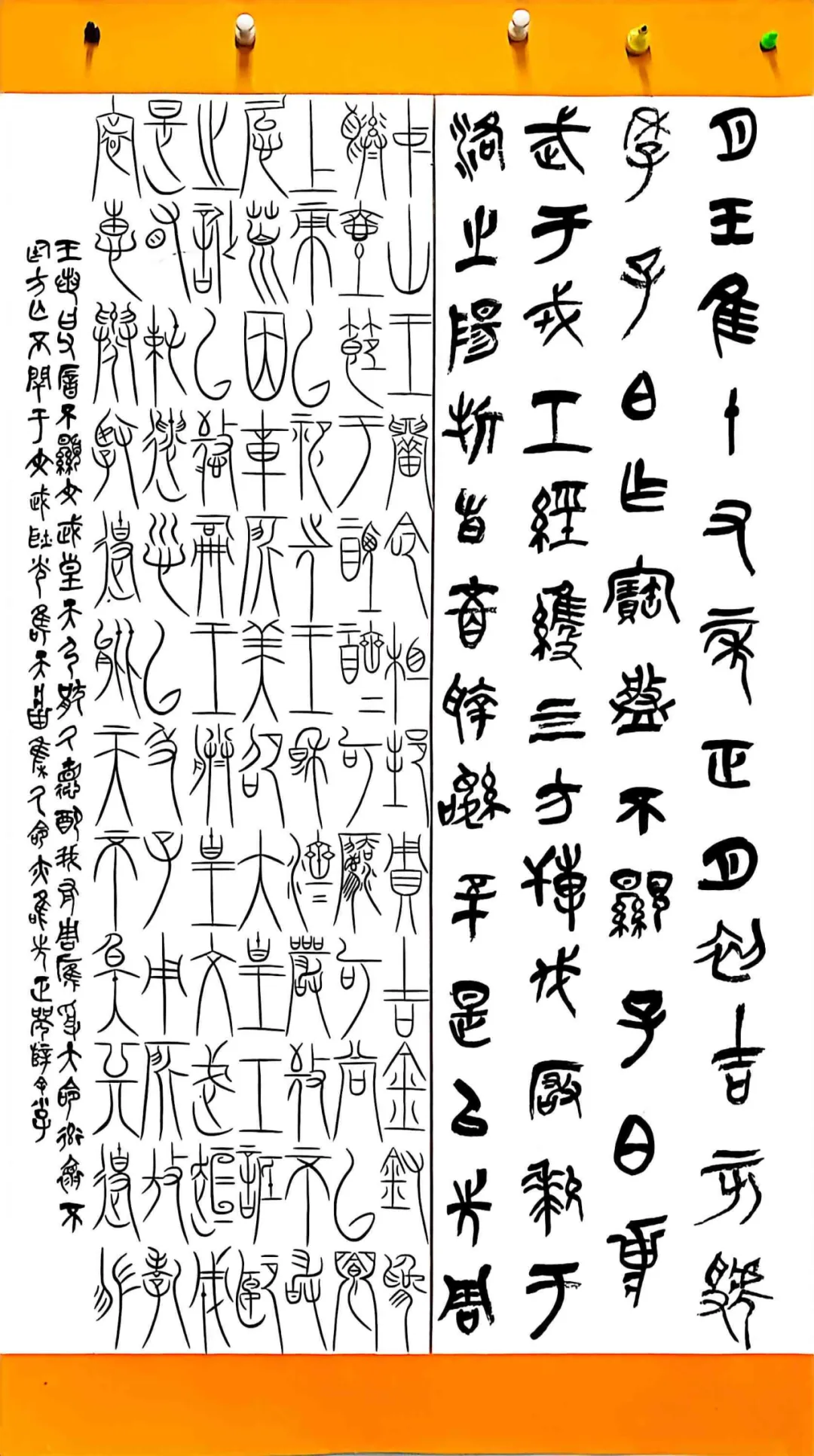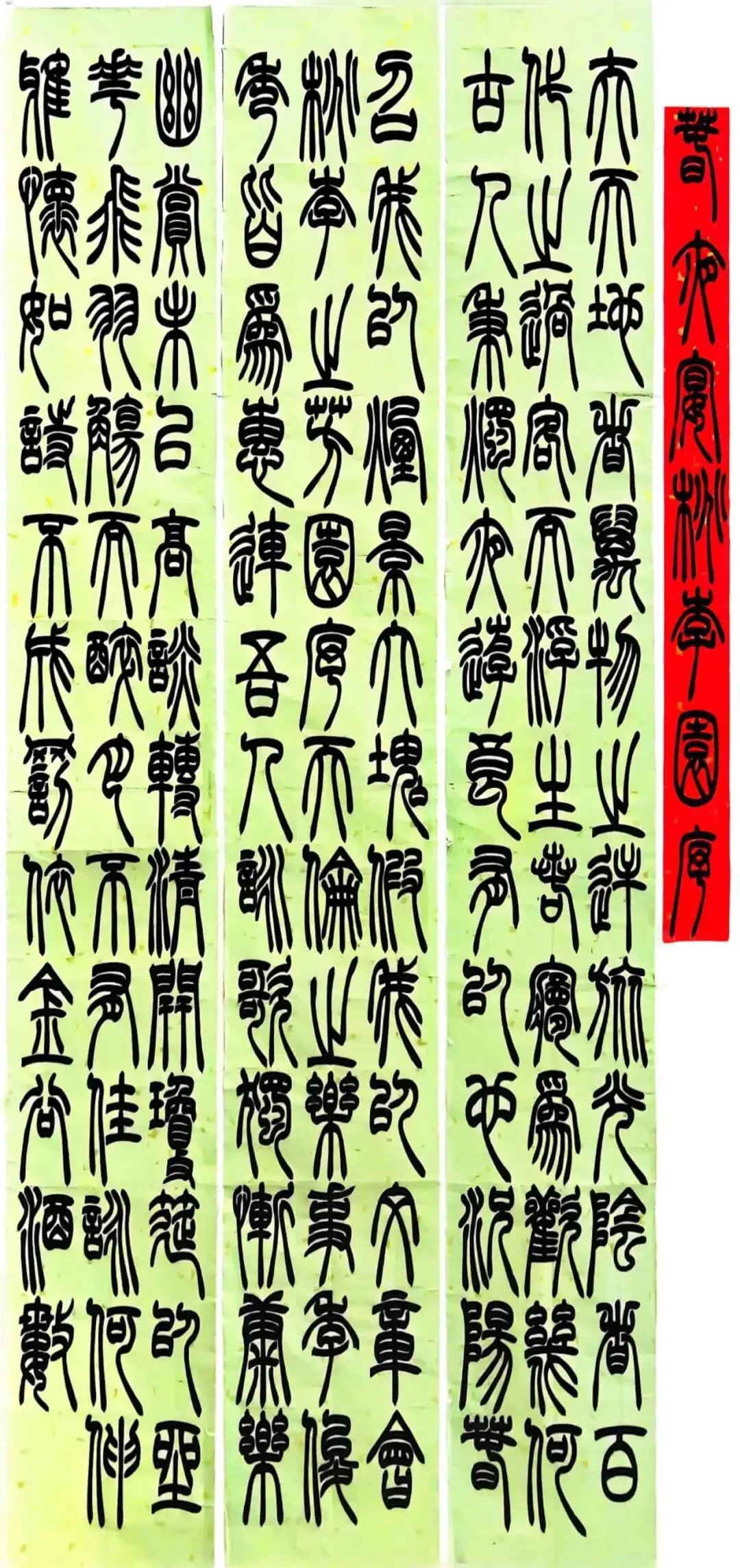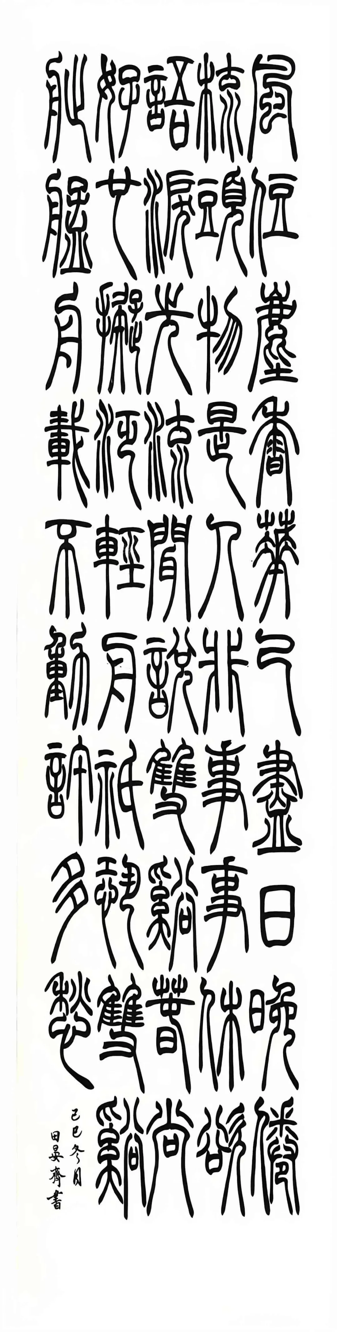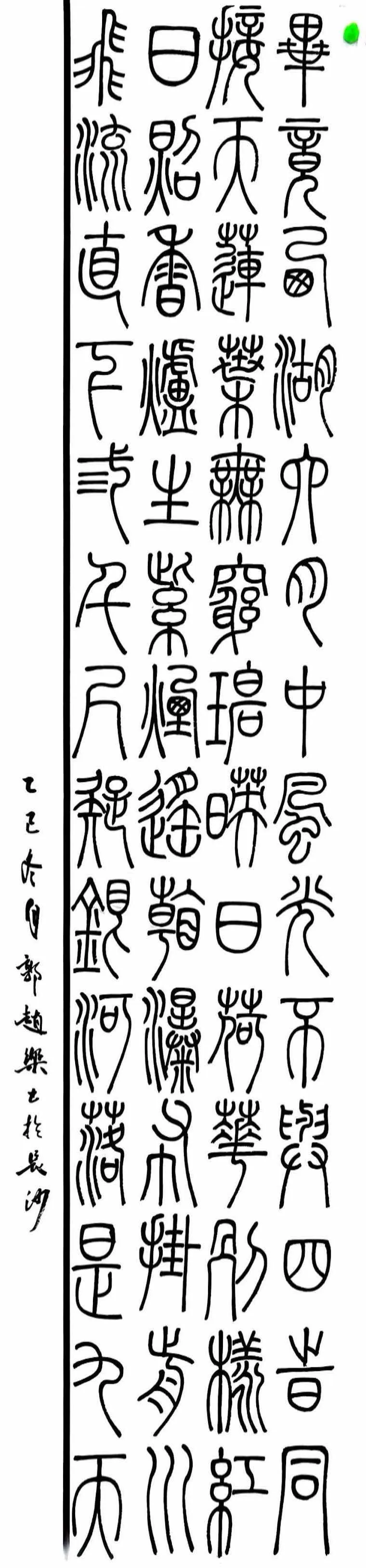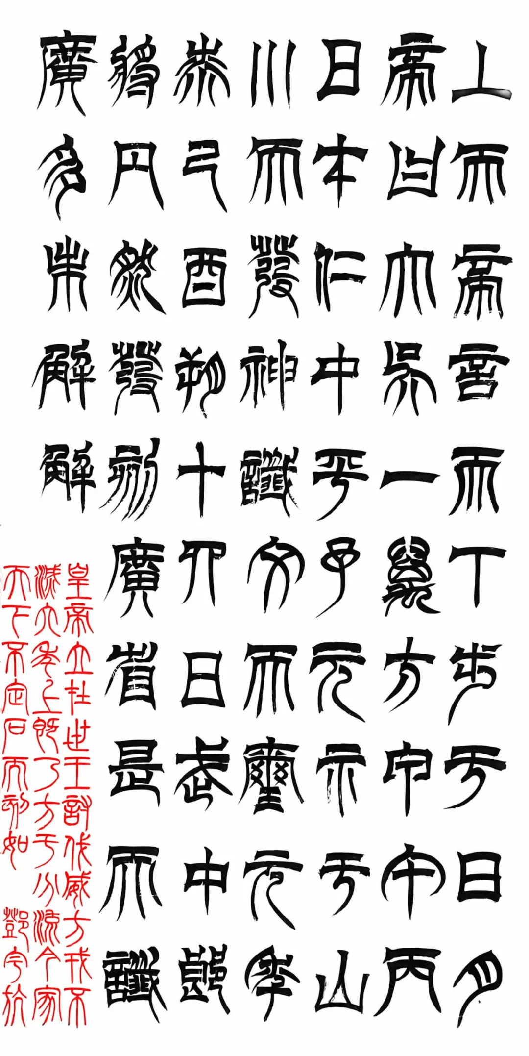 篆书乃中国书法之宗源,上承甲骨金文之古质,下启隶楷行草之流变。秦并六国,李斯等承《史籀篇》之遗绪,省改大篆,创制小篆,遂使文字一统。小篆以"婉而通"为尚,线条圆融如玉箸,结构整饬似天成;大篆则承商周金文之遗风,以"敦而圆"为宗,气象苍茫浑朴,笔意斑驳陆离。诚如包世臣所言"篆尚婉而通",一笔一画皆藏上古之韵致,一字一形尽见文明之根基。