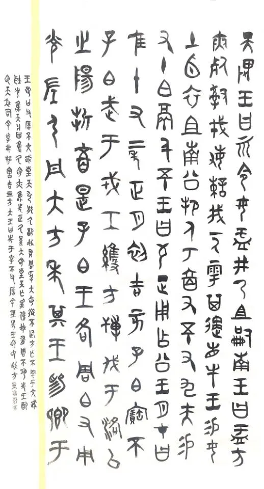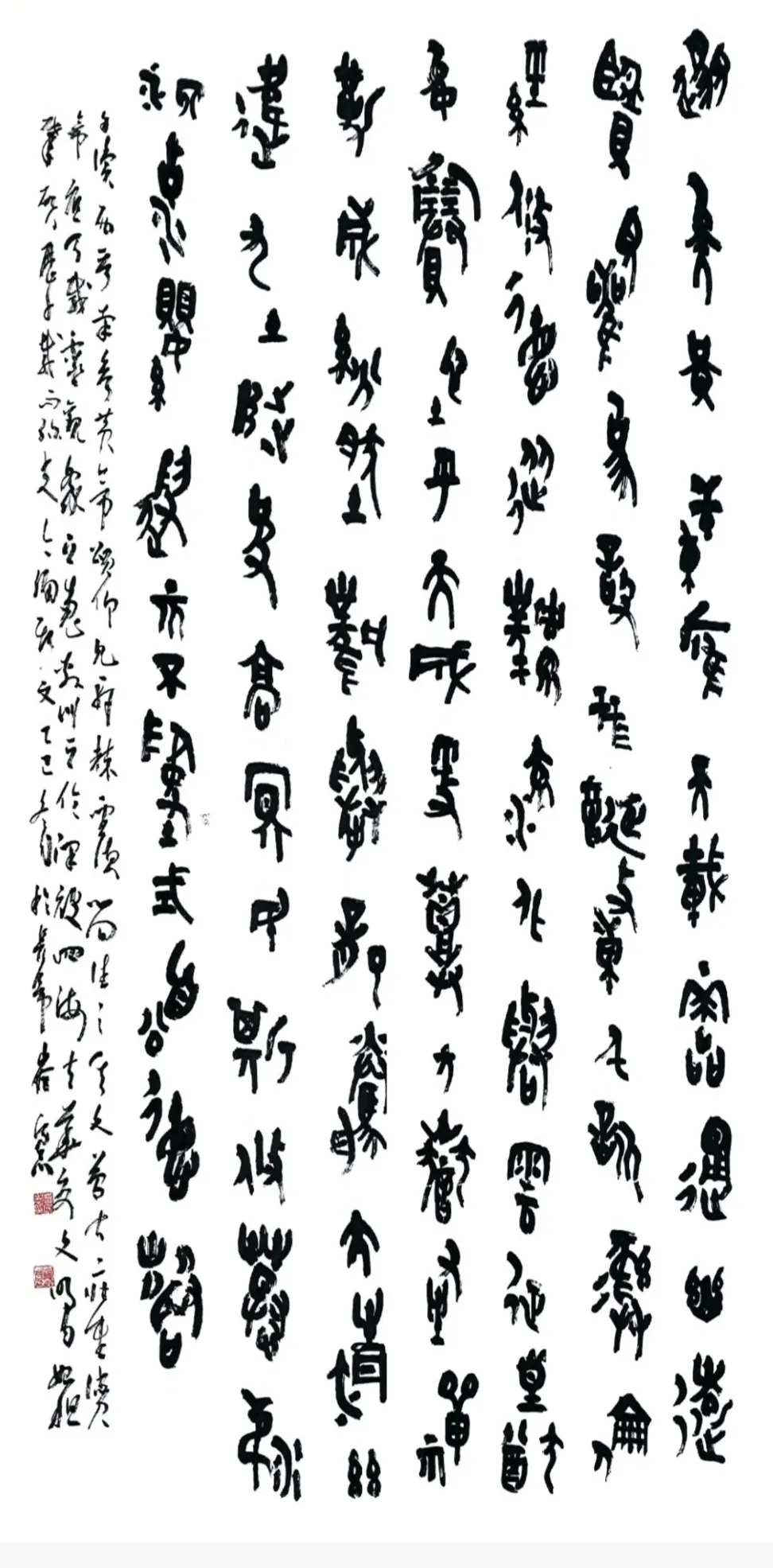 习篆之法,首重中锋行笔,此乃"篆法"之核心。蔡邕《九势》云:"令笔心常在点画中行",笔锋内藏,裹毫涩进,方能得"锥画沙"、"印印泥"之质感。小篆用笔须首尾藏锋,逆入平出,均匀规整;大篆则笔法更为丰富,提按顿挫间可见"肥笔"之趣。习篆者,必静气凝神,于端庄对称中体悟"中含之气",于笔墨流转间涵养"金石气韵"。黄宾虹谓"大篆外表不齐,而骨子里有精神",习篆非徒摹其形,实乃以古文字为载体,承续传统文化之精神命脉。