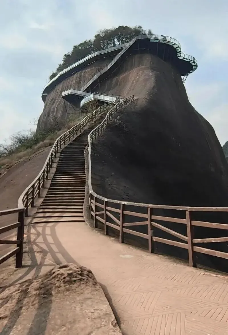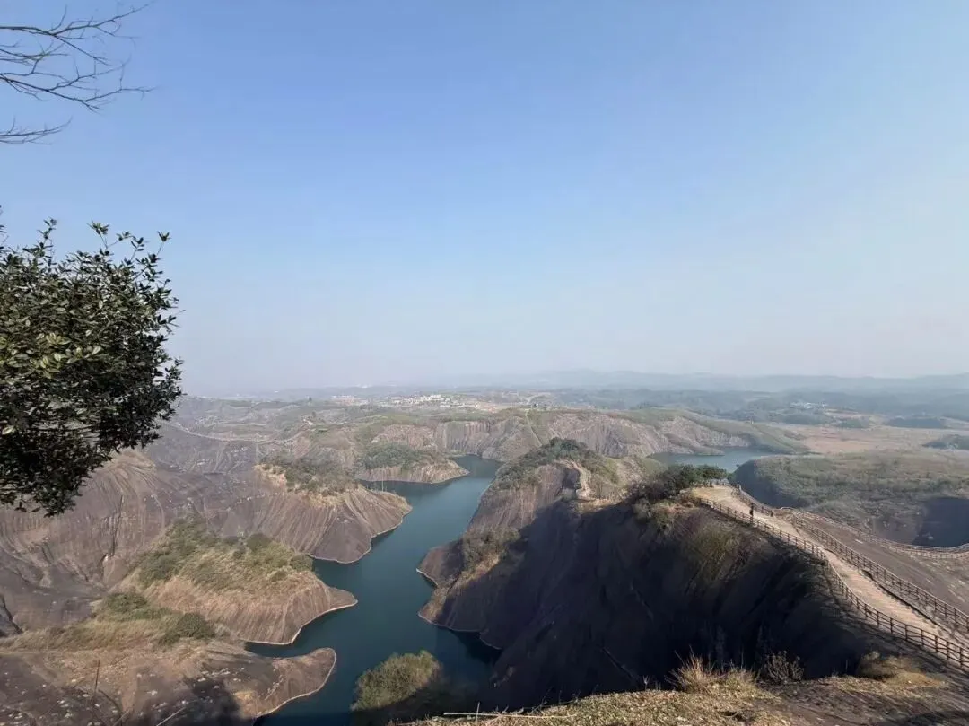 这是一片极具特色的丹霞地貌,山体陡峭却不险峻,碧绿的湖水镶嵌其间,像散落的绿宝石。网红打卡地龙脊背,走起来比想象中安稳,随手一拍都是大片。心里默默约定:下次一定要从正门慢慢攀登,好好感受这片壮阔。