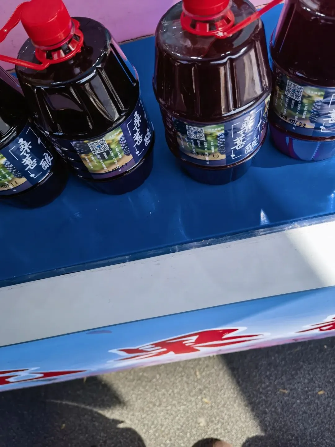 一家酒酿果酒,价格很实在,100块3桶,单买一桶36元,还可以试喝。我试了桂花,桑椹,和百香果的,酒味一点点,喝起来很温和,女生喝也很合适,平价又养生。