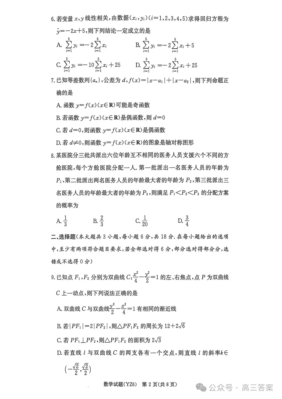 >长沙市一中2026届高三月考试卷六下载