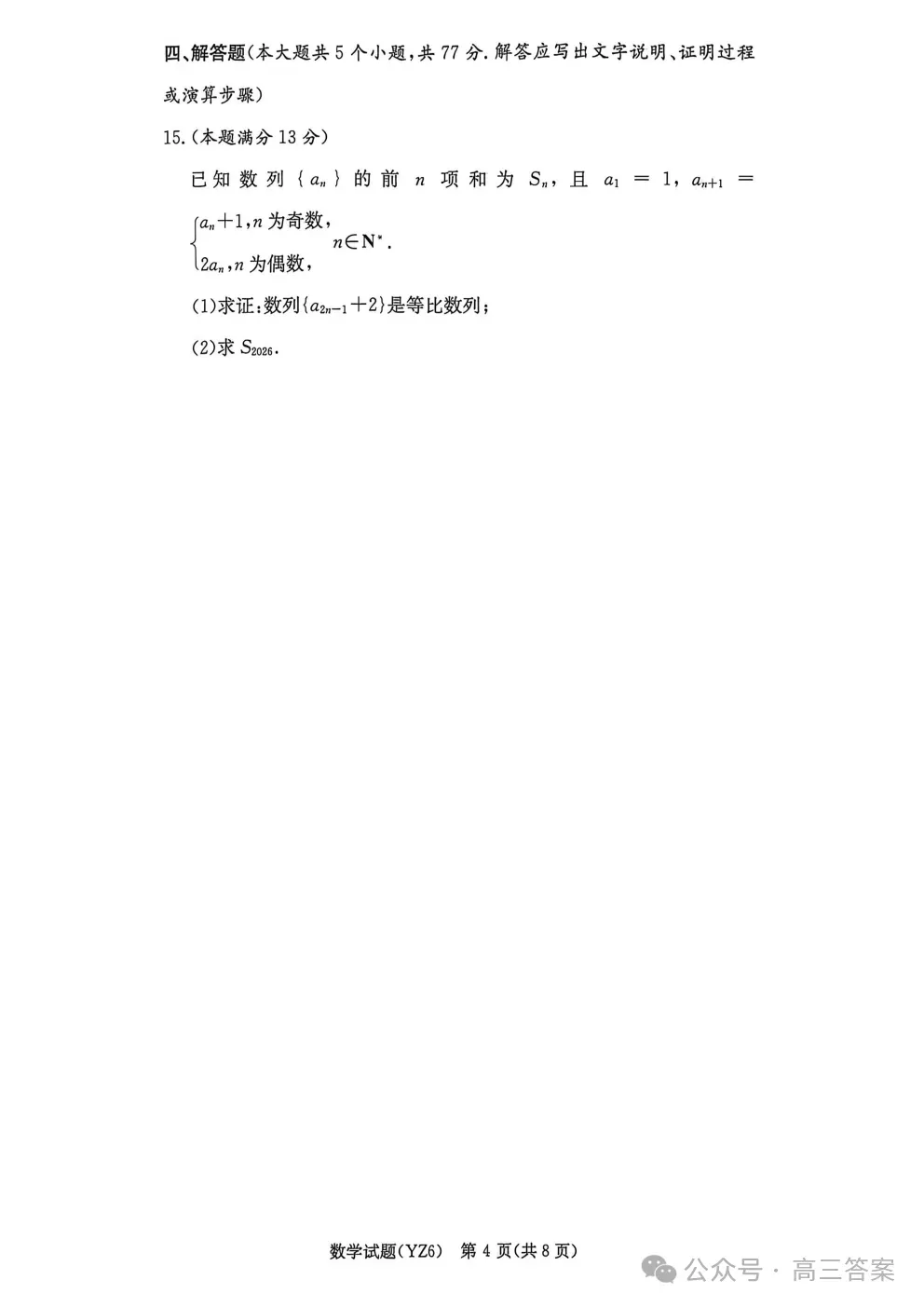 长沙市一中2026届高三月考试卷六《数学,英语,历史,物理,地理、化学、政治、生物、语文》试卷+答案完整版