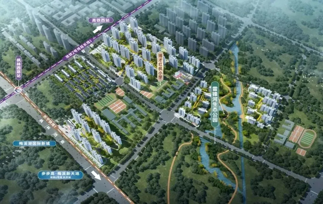 最新进展:目前润和天心序已进入建设阶段,后续将优先推出紧邻长郡外国语实验中学的东地块,仅一路之隔,教育配套便利。