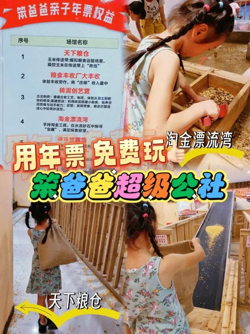 含5大项目:天下粮仓、粮食丰收厂、砖泥创艺园、淘金漂流湾、弹珠撞趣馆等;