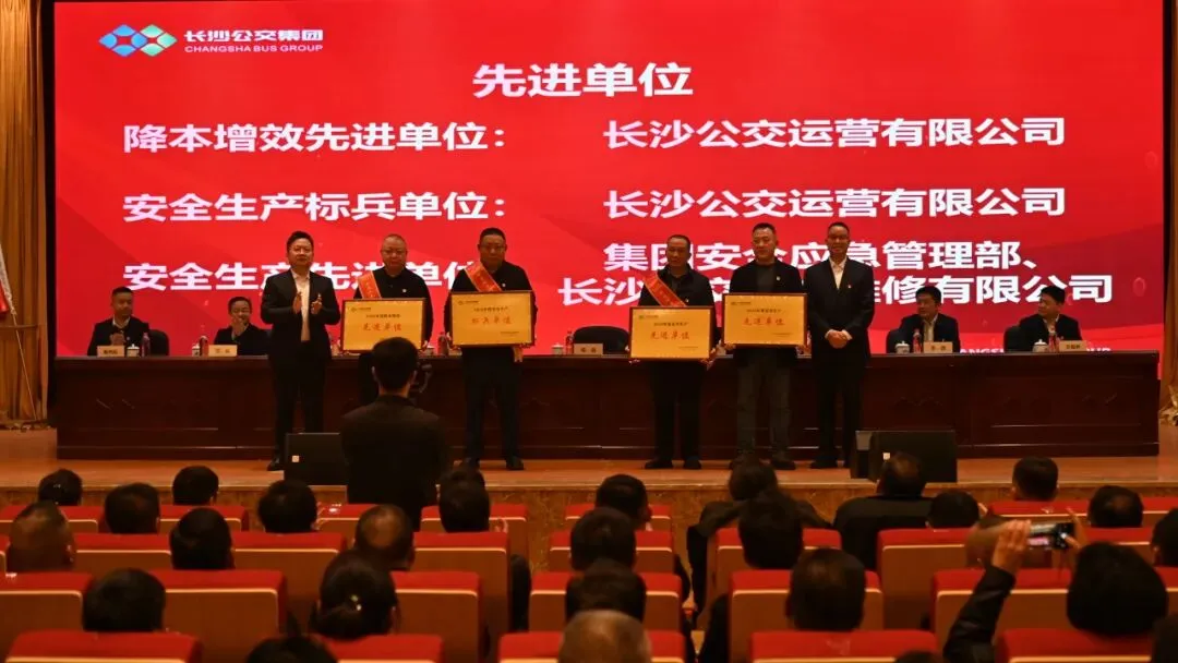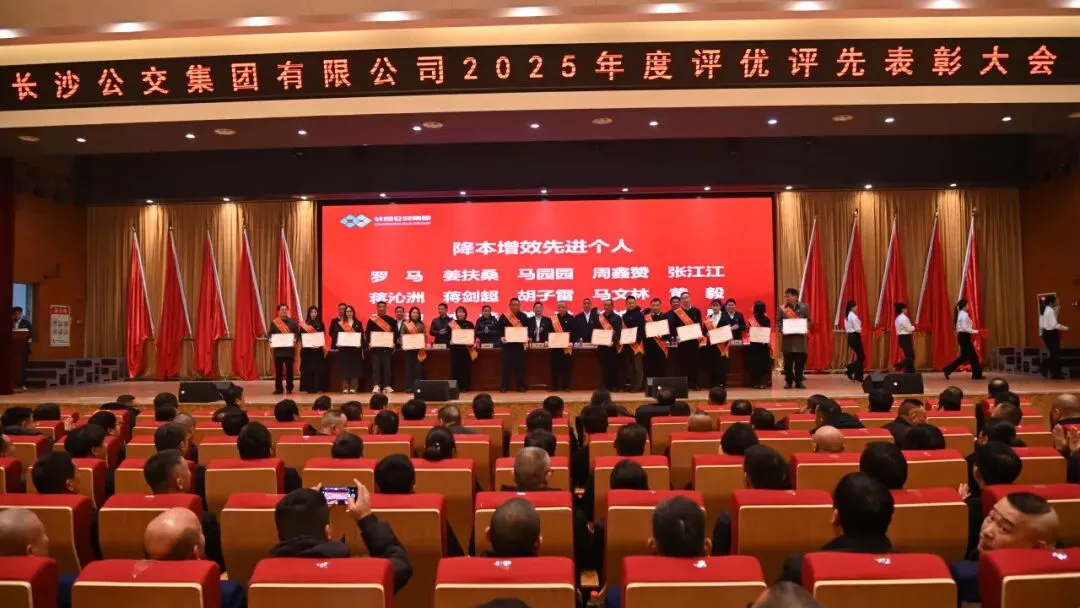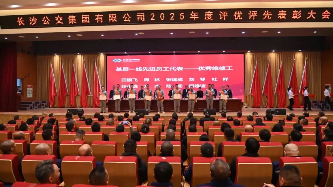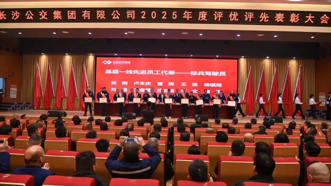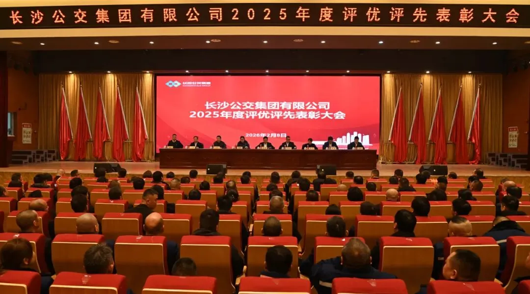2月8日,长沙公交集团召开2025年度评优评先表彰大会,集团党委书记、董事长邓磊出席会议并讲话,党委副书记、董事、总经理旷庆华主持会议。集团全体班子成员,集团高管、中层副职以上干部,各子公司班子成员、基层管理人员及先进个人与获奖单位代表参加会议。