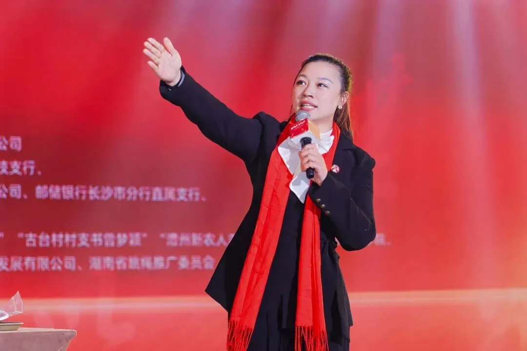 接下来登场的就是我们刚刚在澧商宣传片看到过的火连坡镇古台村党支部书记曾梦颖。她是脚踏实地、仰望星空的新时代基层干部典范,她的肩膀也许柔弱,但她谋求乡亲共同富裕的信念很硬。请各位乡贤动动发财的金手指,为家乡好物打call,为澧县的乡村振兴打call,为家乡优秀的、殚精竭虑的基层干部点赞!舞台交给梦颖。