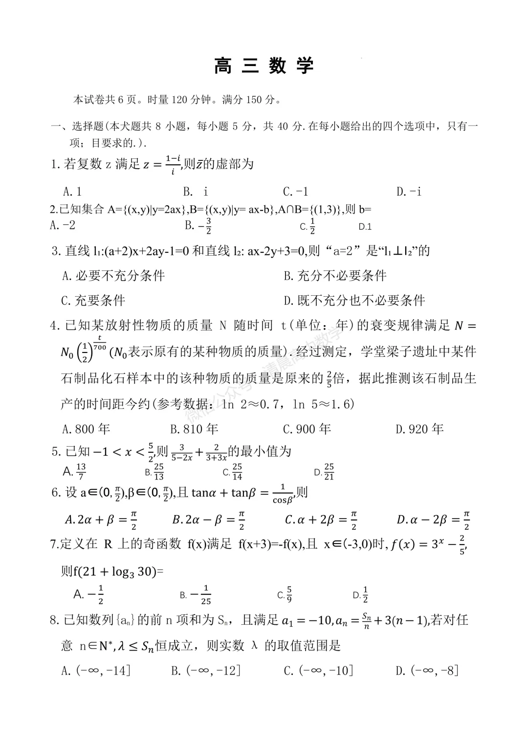 无水印电子版已上传至【26届高考数学会员群】