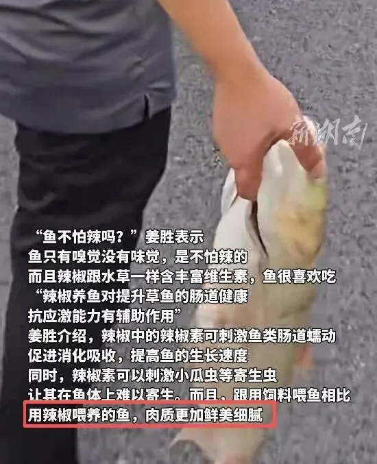 姜先生说辣椒能刺激鱼的肠道蠕动 , 胃口变好 , 吸收更好 , 长得快也长得壮。 辣椒素还能增强免疫力 , 驱除寄生虫 , 鱼苗存活率提高到了92%!