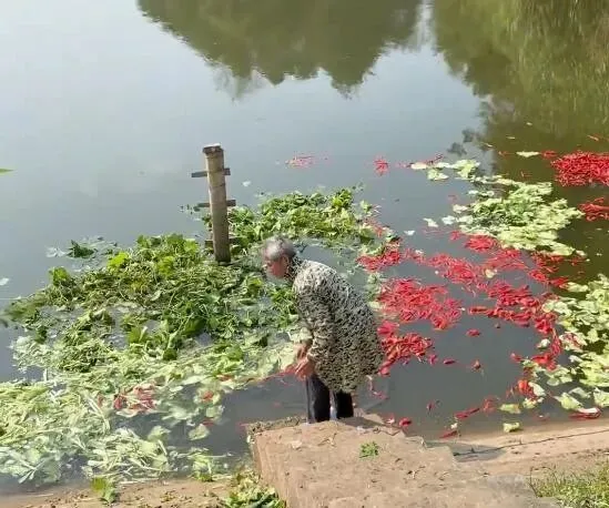 不是做菜 , 不是腌制 , 是真的把辣椒往鱼塘里倒 , 鱼还抢着吃~
