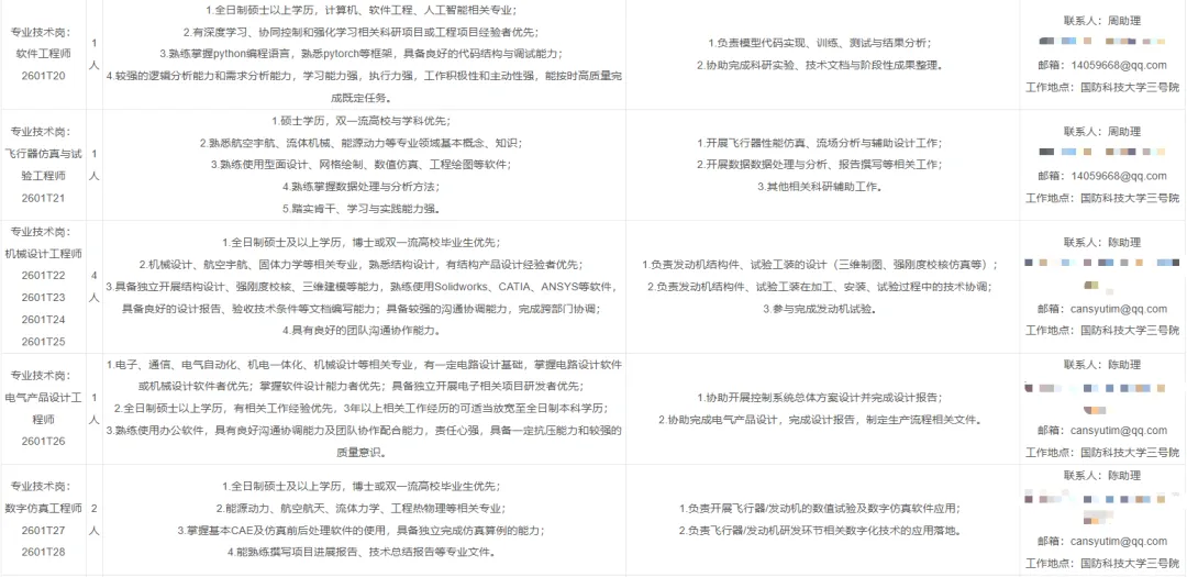 报名方式:岗位表中相应邮箱投递