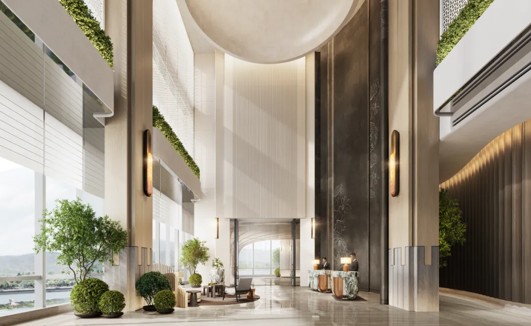 围绕“简美奕境,风华正茂”的品牌理念,诺雅以“中式审美的世界表达”为设计主线,将水墨意境、自然肌理等东方元素,与现代简约的设计语言相融合。不过度彰显传统,却让东方美学在空间中自然流淌。无论是公共区域中延续东方神韵的艺术陈设,还是客房里精选的材质与细节处理,皆在简约中蕴含温度,于克制中体现雅致。