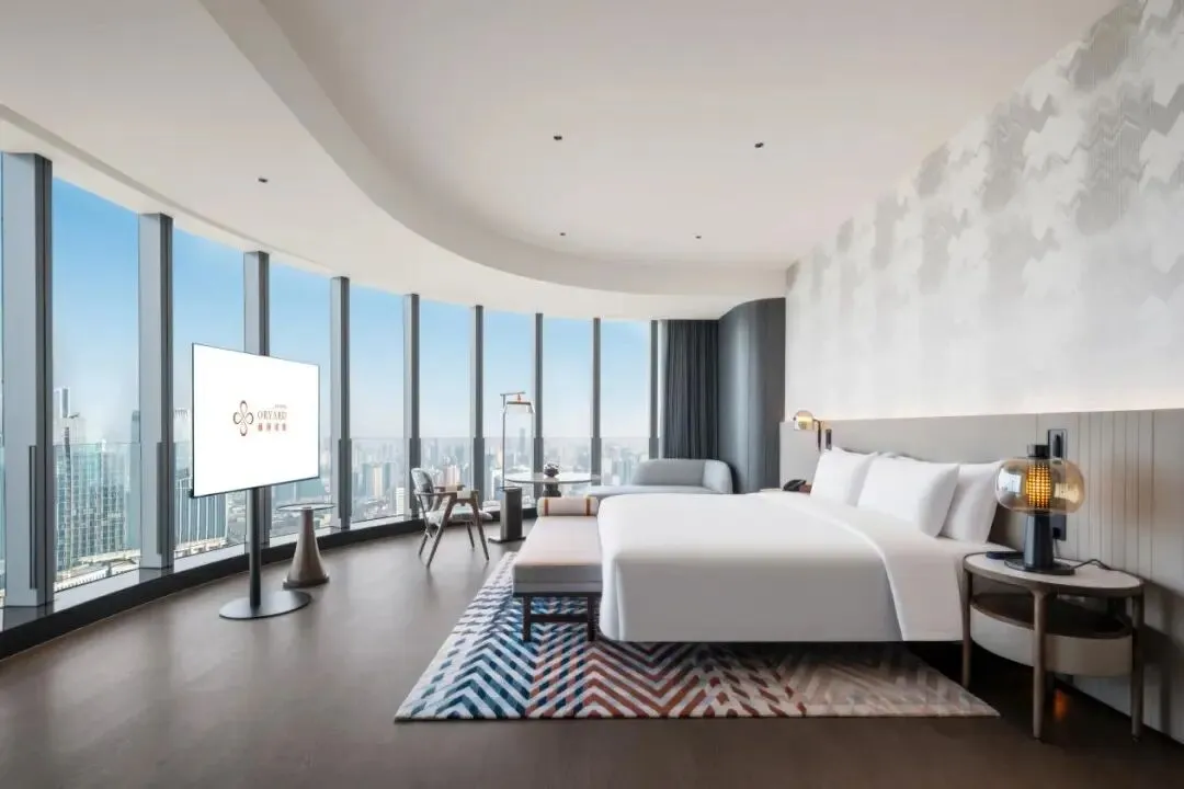 酒店坐落于天心区湘江东岸核心地段,占据38至50层的高空视野,橘子洲头全景尽收眼底。远望可见岳麓山朦胧山色,“山水洲城”的长沙意象,成为窗外流动的风景。