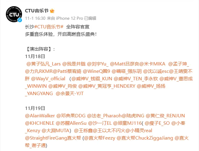 信息来自CTU音乐节官方微博,如有变动以实际演出阵容为准。