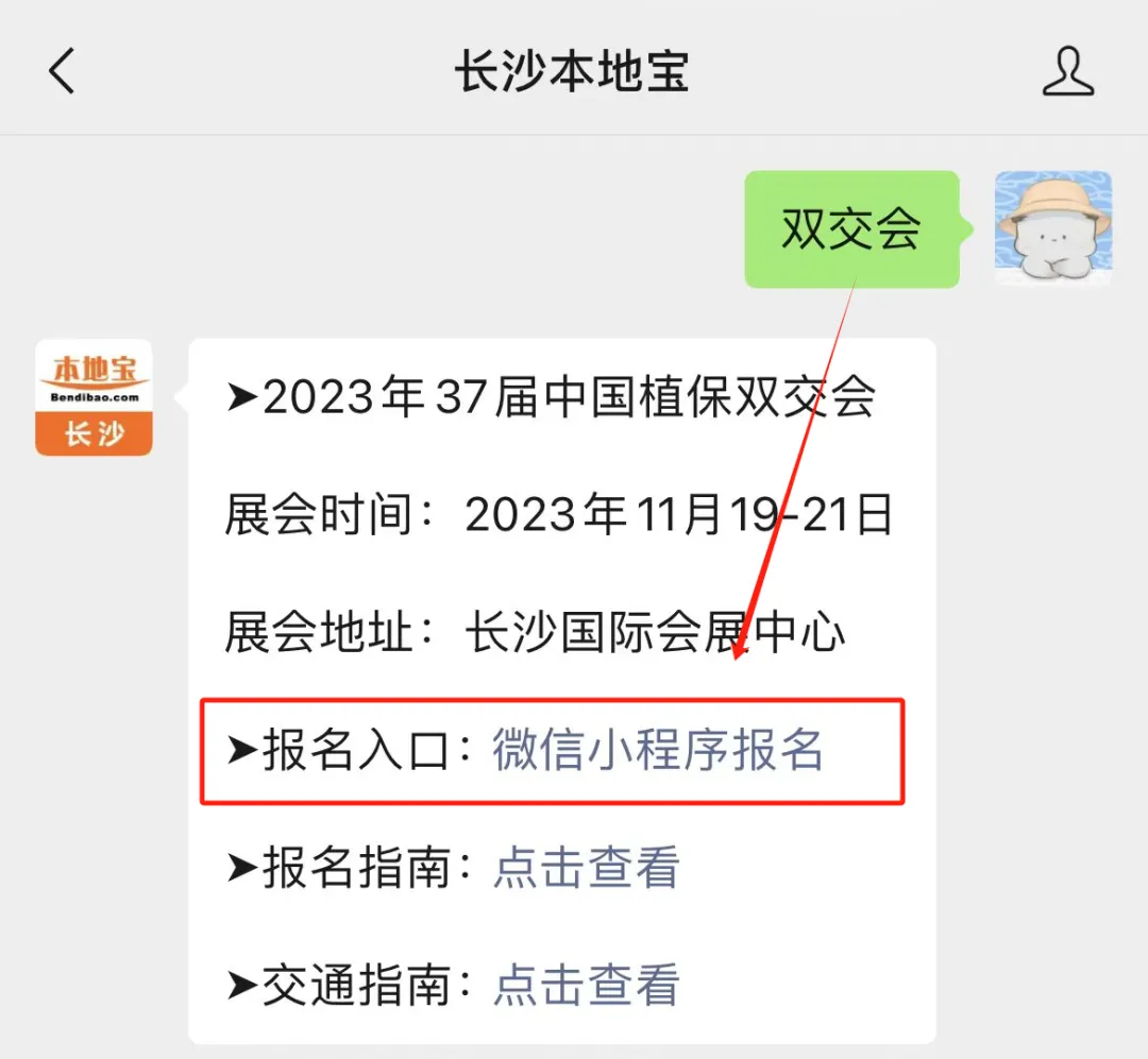 关注【长沙本地宝】微信公众号,聊天框回复【双交会】即可点击进入官方预约入口~
