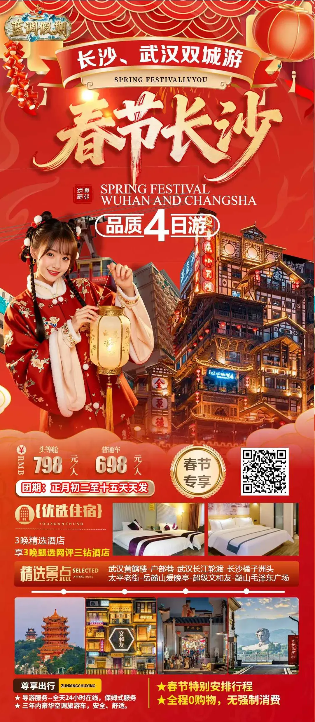 【20人团】长沙+张家界+天门山+湘西+凤凰3日2晚「楚韵翠微20人纯玩」春节赠年夜饭+红包&2+1航空巴士|3大5A核心|赠苗服换装+百龙天梯