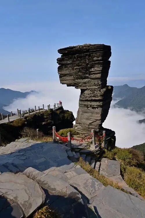 早餐后前往铜仁,抵达后前往游览【中南门】位于铜仁市中心城区中山路的中南门古城占地3.6万多平方米,古城内保存有较好的明清建筑物、民国时期建筑;四合大院、古巷道、天井;保存完好的封火墙上嵌有以示各家界址的姓氏墙砖,这些古建筑直观反映了城市发展的历史轨迹,是明清至民国时期铜仁社会经济发展缩影和真实写照。早餐后乘车前往世界自然遗产,中国第五大佛教名山、弥勒菩萨道场——【梵净山】景区(不含景区必消电瓶车20元/人、索道140元/人、保险10元/人),梵净山是贵州最独特的一个地标景区,也称黔东灵山,是一方净土,是一个返璞归真、怡养身心、令人遐思神往的人间仙景和天然氧吧!著名诗人王心鉴《过梵净山》一诗“近山褪俗念,唯有竹声喧。栖心皈净土,推云步梵天。禅雾入幽谷,佛光上苍岩。海内循道者,多来续仙缘。”即印证了梵净山风景优美,让人忘却尘世烦恼的魅力景色。【蘑菇石】其名字就如形象一样,