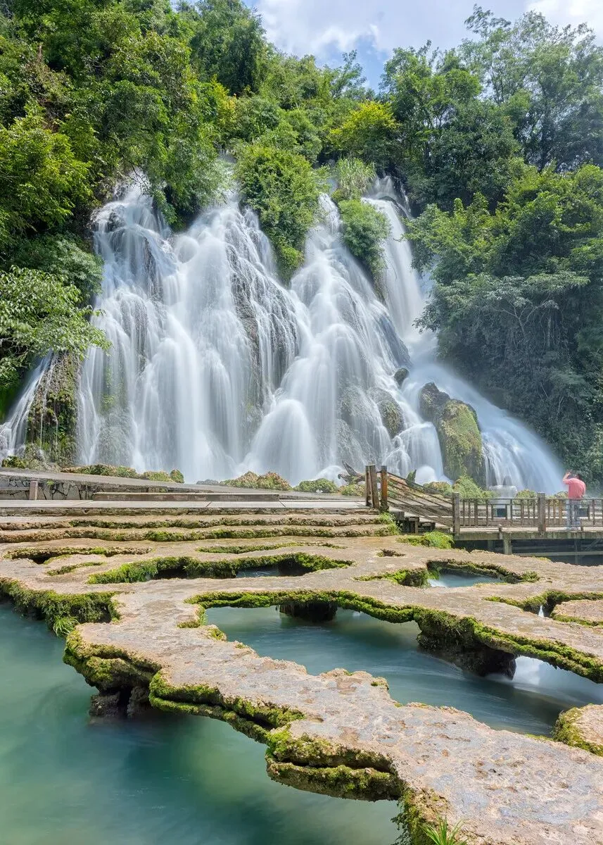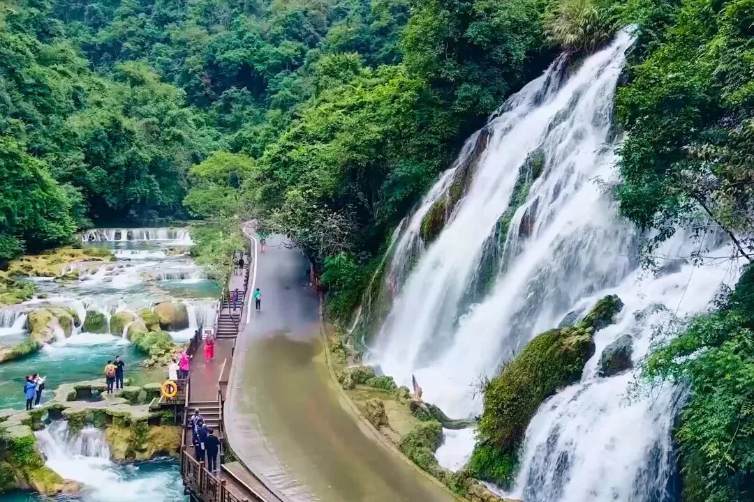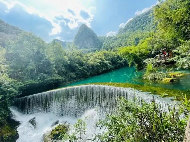 宝石”和“喀斯特地貌上的奇迹”,景区以精巧、秀美、古朴、幽静著称,景区移步换景,布局紧凑。进入小七孔后首先到达的景点是【卧龙潭】暗河从崖底涌出,潭面上不见踪影,只有坝上雪崩似的滚水瀑布,才感到卧龙在潭底翻滚。波光闪闪的湖面有的像蓝宝石一样湛蓝清澈,又似情人流动的眼波,引人入胜在往前走【翠谷瀑布】密集的峰丛耸入云天,远看似多条白色绸带悬于群山之腰,水顺山势呈扇形姿态倾泻而下,多条水流交叉穿插,浪花飞溅,水雾蒙蒙··大自然神奇力量带来旖旎的喀斯特风光引人向往。游玩后往前就是【水上森林】堪称一道翡翠屏障,清澈的河水从河谷丛生的乔木灌木林里穿涌而下,连磐石的棱角也被长年累月的流水冲刷变得圆润,“水在石上淌,树在水中长”,远远的看去,就像一幅中国水墨画,人见人叹。不知不觉就来到【六十八级跌水瀑布】层层叠叠的瀑布,淙淙哗哗倾泻而下,或倾珠撒玉,推雪拥云,或如匹练飘逸,似银河泻地,形态各异,气象万千。千姿百态的瀑布跌水竞领风骚,争奇斗妍,构成风情万种的动态水景,更觉眼前诗意盎然,美不胜收。在往前就是【拉雅瀑布】拉雅瀑布腾空喷泻,横向坠落,同响水河纵向错落的68级瀑布构成一幅绝妙的立体交叉瀑布群景观。瀑在路侧,人在瀑下,倍觉酣畅和亲爽。小七孔拉雅瀑布溅喷的水雾飘飘洒洒,纷纷扬扬,给游客捎带着扑面而来的凉爽,可一洗暑热和劳乏,顿感轻松和振奋。最后来到最为经典的【小七孔古桥】昔为沟通荔波至广西的重要桥梁。桥由麻石条砌成,桥身爬满藤蔓和蕨类青草,愈发显得小桥的古朴与久远,古桥下碧绿的潭水静静流淌,潭水绿如墨翠,水天山水,融为一色。 早餐后出发前往安顺国家AAAAA景区——【黄果树风景名胜区】(不含景区必消环保车50元/人、保险10元/人),黄果树瀑布即黄果树大瀑布,是黄果树大瀑布景区的核心,古称白水河瀑布,亦名“黄葛墅”瀑布或“黄桷树”瀑布,因本地广泛分布着“黄葛榕”而得名。必游景点:【犀牛潭】、【天星桥风景区(上半程)】、【陡坡塘瀑布】[天星桥景区]天星桥景区是黄果树风景区中已全部开发的景区,景区规划面积7平方公里,开发游览面积4.5平方公里,分 为三个相连的片区,即:天星盆景区、天星洞景区和水上石林区。[陡坡塘景区]位于黄果树瀑布上游1公里处,瀑顶宽105米,高21米,是黄果树瀑布群中瀑顶最宽的瀑布。陡坡塘瀑布顶上是一个面积达1.5万平方的巨大溶潭,瀑布则是形成在逶迤100多米长的钙化滩坝上。后前往最美赏樱胜地
