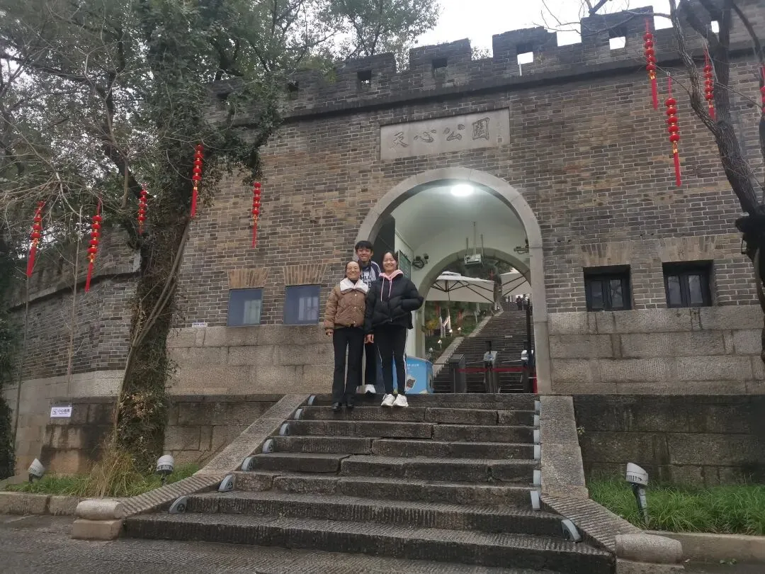 思绪沉浸在历史长河中,下午爬岳麓山(东门上南门下),全程步行。岳麓书院前小宝打卡🧡照。