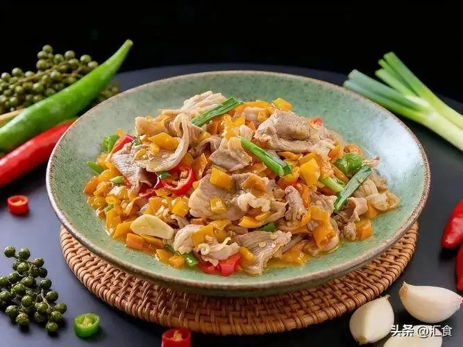 还有“黄贡椒炒肉”,黄贡椒是衡东的灵魂。它不像红辣椒那么燥热,也不像青辣椒那么生涩,带着一股子独特的鲜辣味。肉片裹着辣椒油,光是看着,口水就止不住。