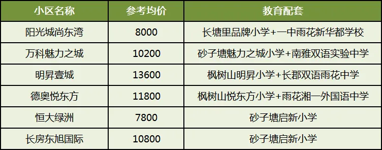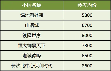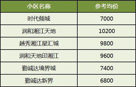 其中润和湘江天地、越秀湘江星汇城、润和天地印湘江是次新小区,均价贵一点。望城的小区均有双书包配套,小升初不派位。时代倾城是成交量最高的,仅7千左右,性价比高。