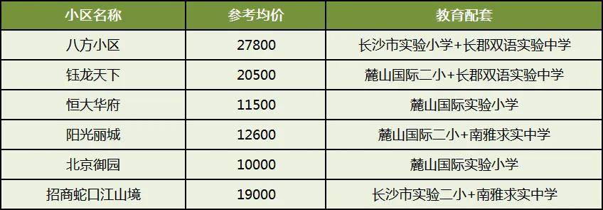 省府板块虽然双书包小区不多,但也是教育实力很强的,因为派位环境都很不错,绿地公馆、花漾年华读湘府英才,翡丽雅苑和书香院房龄更新,读青园梓枫小学。