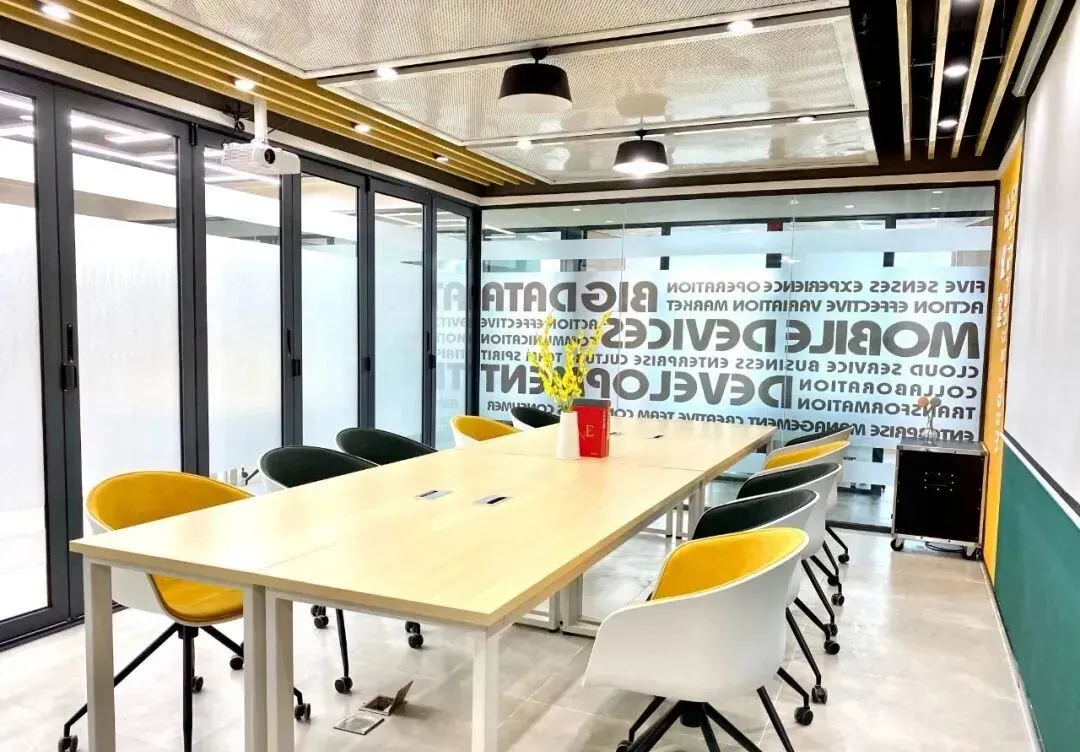 因为在这个空间入驻的企业可一同享用空间的共同设备,例如:打印机、会议室、茶水室、洽谈区等。